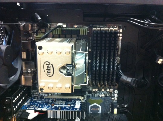 My old work computer is starting to show its age, and so for about a year now I’ve been almost exclusively working on one of the computers in the lab cluster. The mini-cluster, which I built out of robust core i7 920 machines to analyze array data, has been a great success, and now it’s basically full. So I ordered a custom-built number crunching machine, paid for by my very awesome advisor, which I just received.