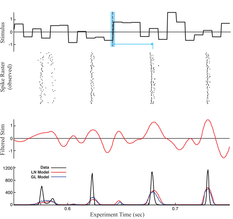 Butts DA, Weng C, Jin J, Alonso JM, & Paninski L (2011). Temporal Precision in the Visual Pathway through the Interplay of Excitation and Stimulus-Driven Suppression. The Journal of neuroscience, 31 (31), 11313-27 PMID: 21813691