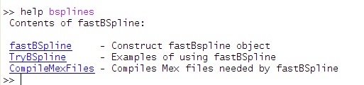 %Contents of fastBSpline: % %fastBSpline - Construct fastBspline object %TryBSpline - Examples of using fastBSpline %CompileMexFiles - Compiles Mex files needed by fastBSpline