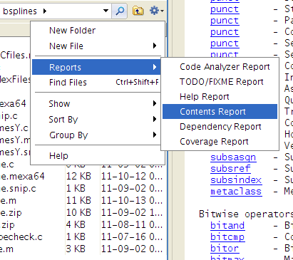 This menu also contains the Help Report option, which allows you to browse the help that you’ve written for all the files in the current folder. In addition, the Dependency Report will show you functions which are called by files inside the current folder, which is useful when you’re about to share functions and you want to make sure that you’ve included all the required files.