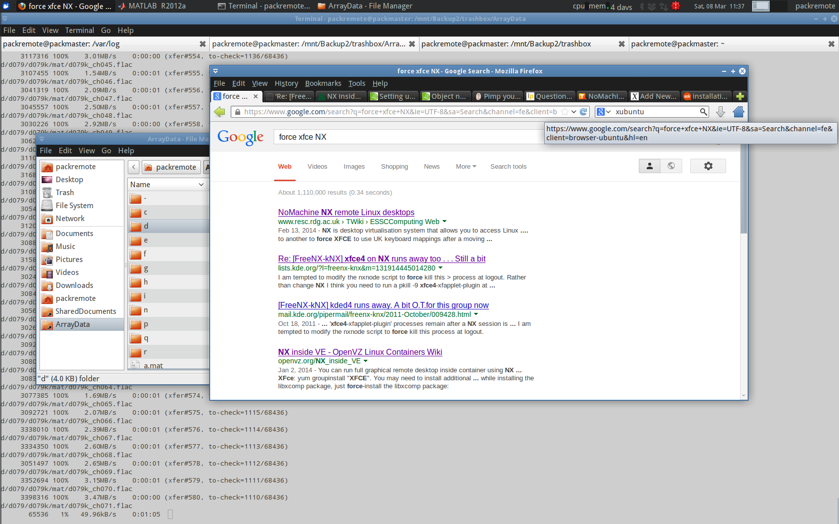 There’s a few solutions for this, but the best I’ve found so far is also one of the simplest, and it will not break you local Unity installation. XFCE, an alternative window manager, looks like of a mix between the old GNOME interface and KDE. It doesn’t use fancy transitions, etc. which don’t work well over the wire, and so it plays well with NX. You can install the xubuntu shell – the XFCE window manager within Ubuntu, using: